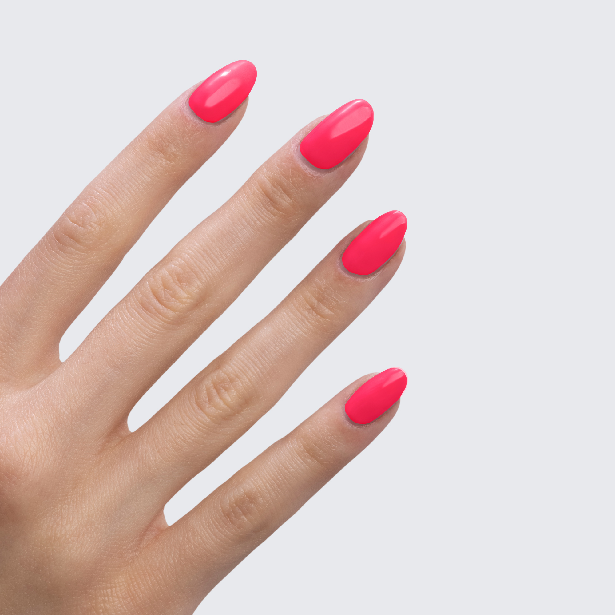 Neon pink. Bright. Cool undertone. Medium opacity.